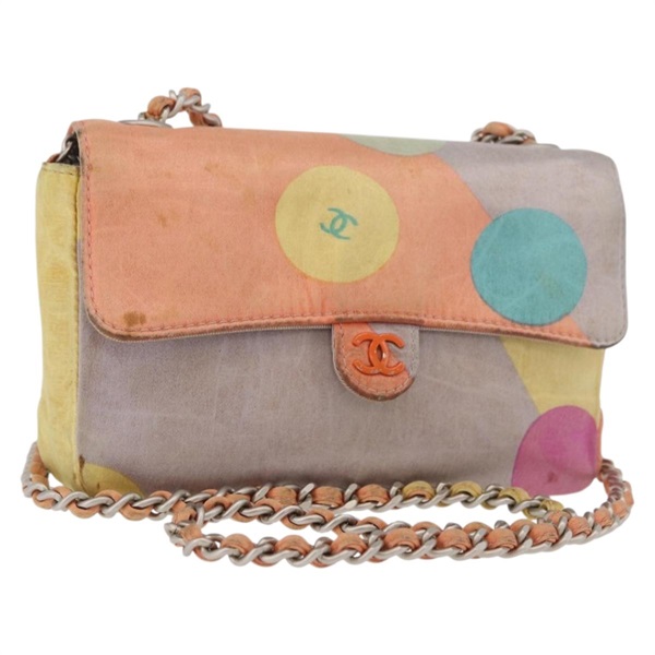 • シャネル CHANEL ショルダーバッグ マトラッセ チェーン サテン マルチカラー シルバー レディース BAZ661A