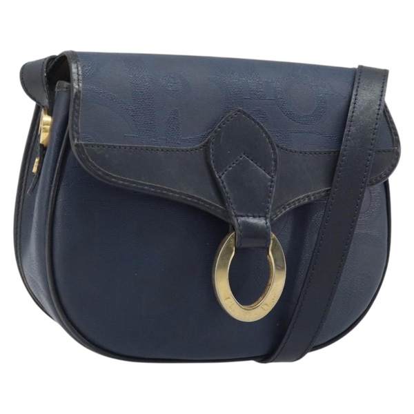 クリスチャンディオール Christian Dior ショルダーバッグ トロッターキャンバス PVC ネイビー ゴールド レディース ka3468A
