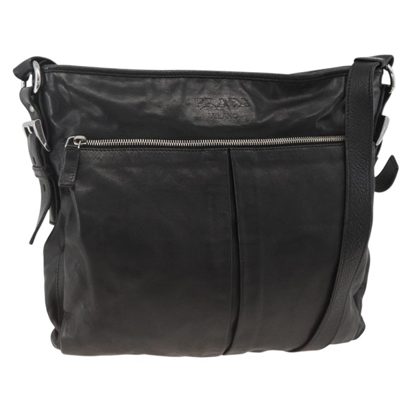 • プラダ PRADA ショルダーバッグ レザー ブラック シルバー レディース ka3596A