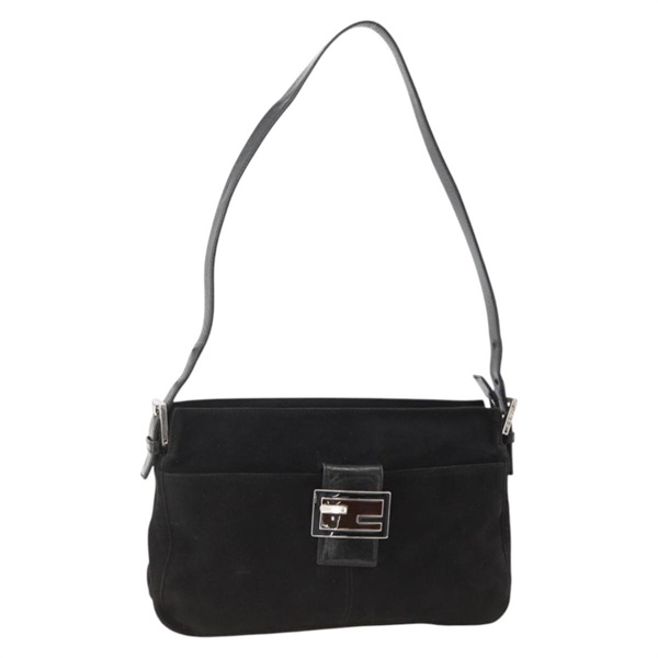 • フェンディ FENDI マンマバゲット ショルダーバッグ スエード ブラック シルバー レディース YKZ894A