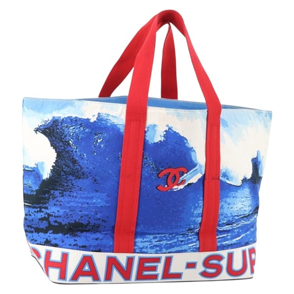 • シャネル CHANEL トートバッグ サーフライン キャンバス ブルー ホワイト レディース mr2068V