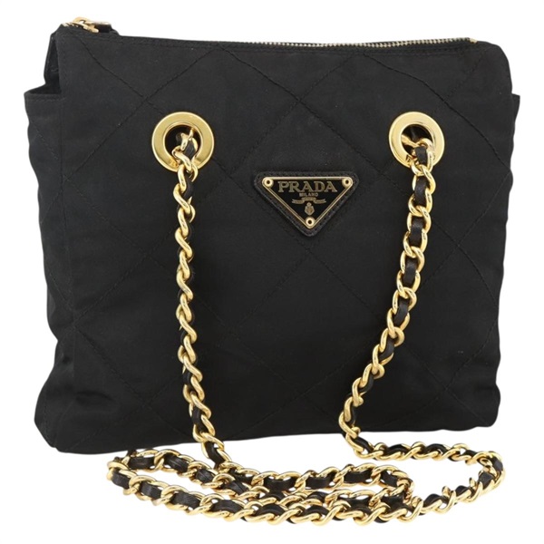 • プラダ PRADA トートバッグ チェーン ナイロン ブラック ゴールド レディース SW2235V
