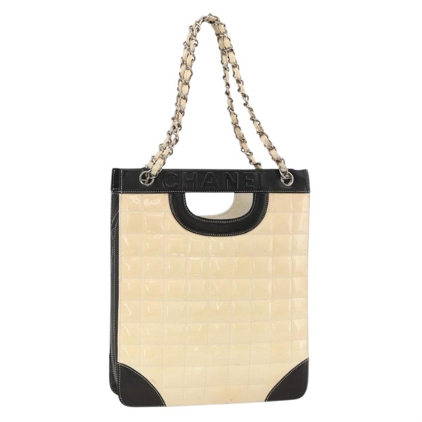 シャネル CHANEL トートバッグ チョコバー チェーン ショルダー パテントレザー ベージュ シルバー レディース BA11764A