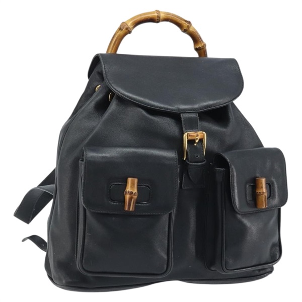 グッチ GUCCI バックパック バンブー レザー ブラック ゴールド レディース YKZ134A