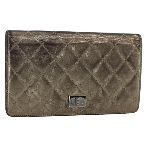 シャネル CHANEL マトラッセ 2.55 長財布 ラムスキン ゴールド シルバー レディース 174416A