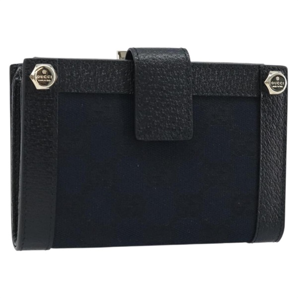 • グッチ GUCCI 二つ折り財布 GGキャンバス ブラック ゴールド 154163 レディース BAZ258A
