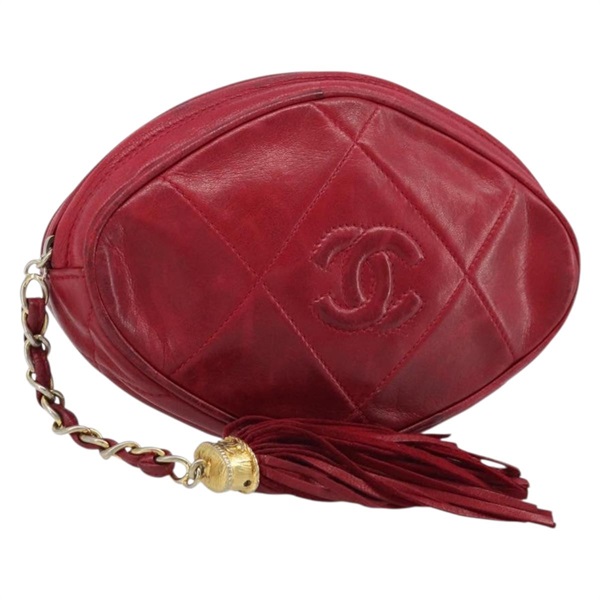 • シャネル CHANEL ポーチ マトラッセ ラムスキン レッド ゴールド レディース AMZ037A