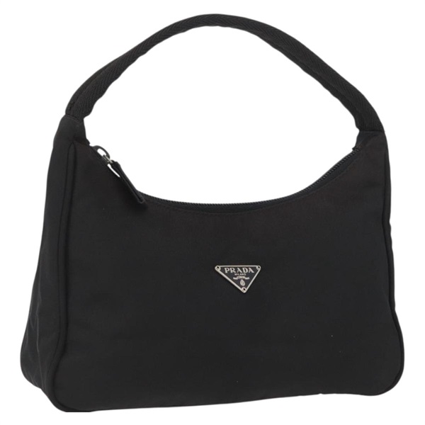 • プラダ PRADA ハンドバッグ ハンドポーチ ナイロン ブラック シルバー レディース BAZ078A