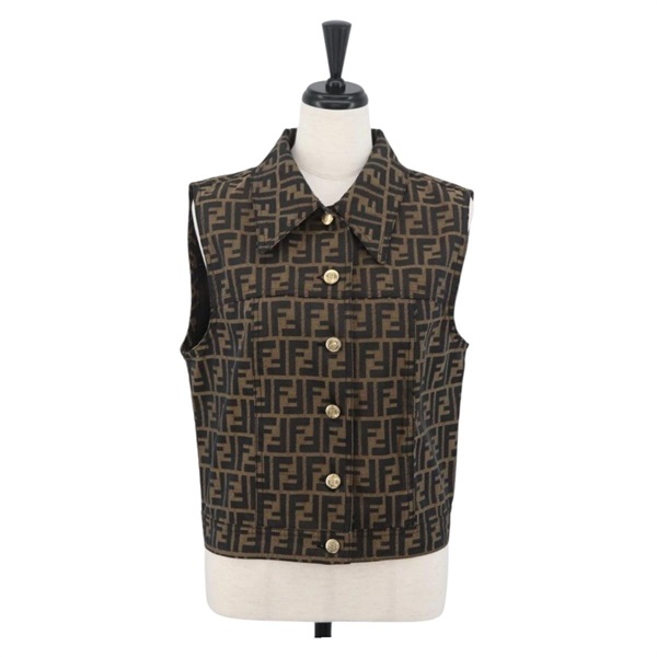 • フェンディ FENDI 上着 ズッカキャンバス ベスト ブラック ブラウン D-HG-1234 レディース YKZ604A
