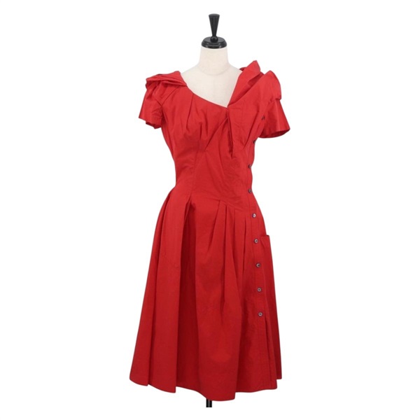 ルイ・ヴィトン LOUIS VUITTON シャツ ワンピース コットン レッド レディース 167171A