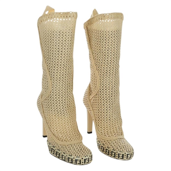 フェンディ FENDI ブーツ ロングブーツ ラフィア ベージュ 8T8083 レディース SW2296SM