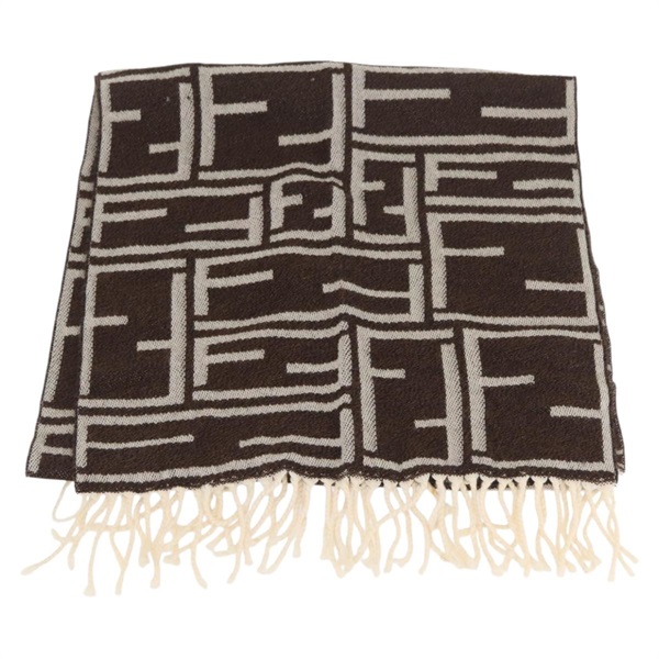 フェンディ FENDI マフラー ズッカキャンバス ウール アイボリー ブラウン レディース 174421A